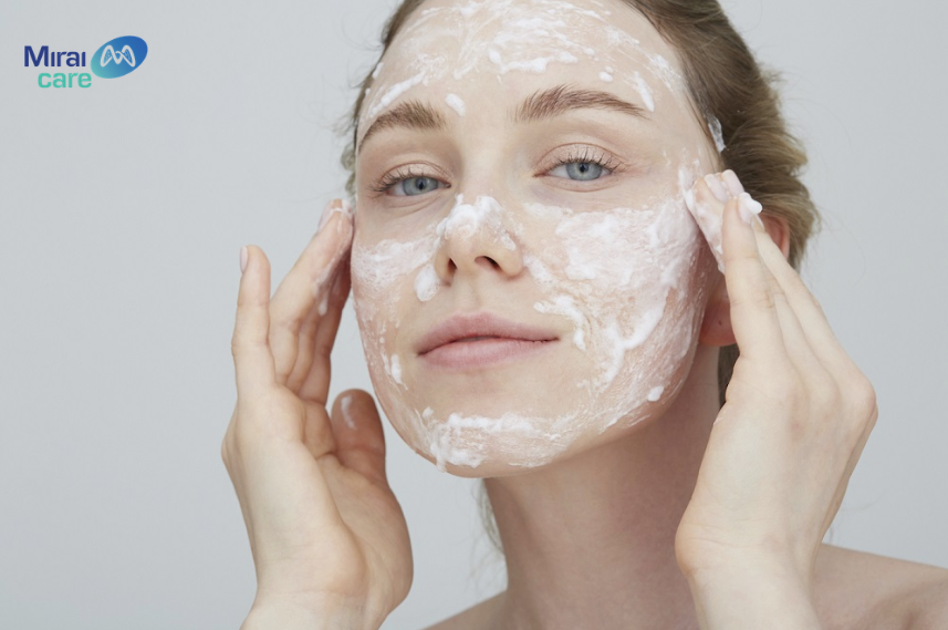 - Rửa mặt sạch bằng sữa rửa mặt và lau khô.