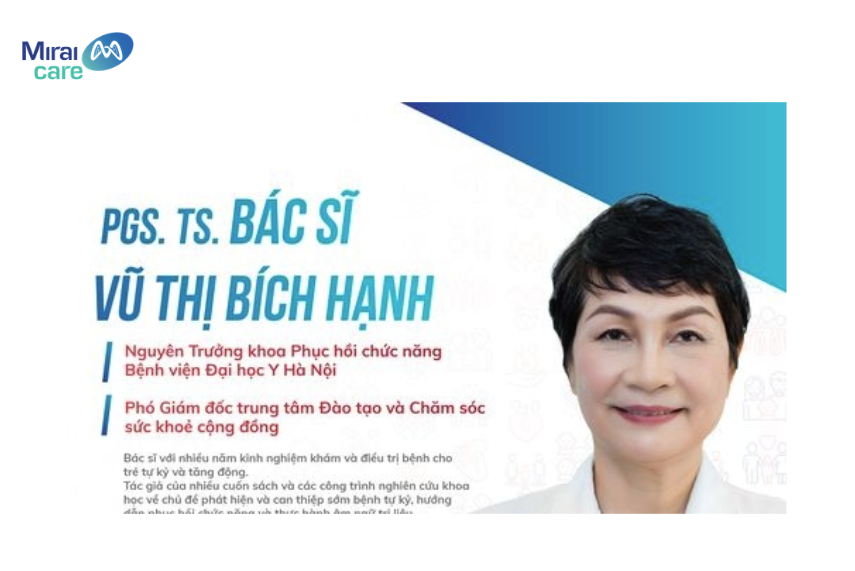 Phó Giáo sư, Tiến sĩVũ Thị Bích Hạnhđược đánh giá là một trong những chuyên gia đầu ngành trong lĩnh vựcâm ngữ trị liệu và phục hồi chức năng tại Việt Nam. Bác sĩ có nhiều năm kinh nghiệm trong việc khám, đánh giá và can thiệp cho trẻ gặp khó khăn về ngôn ngữ như chậm nói, nói ngọng, nói lắp, rối loạn giao tiếp hoặc trẻ mắc rối loạn phổ tự kỷ.