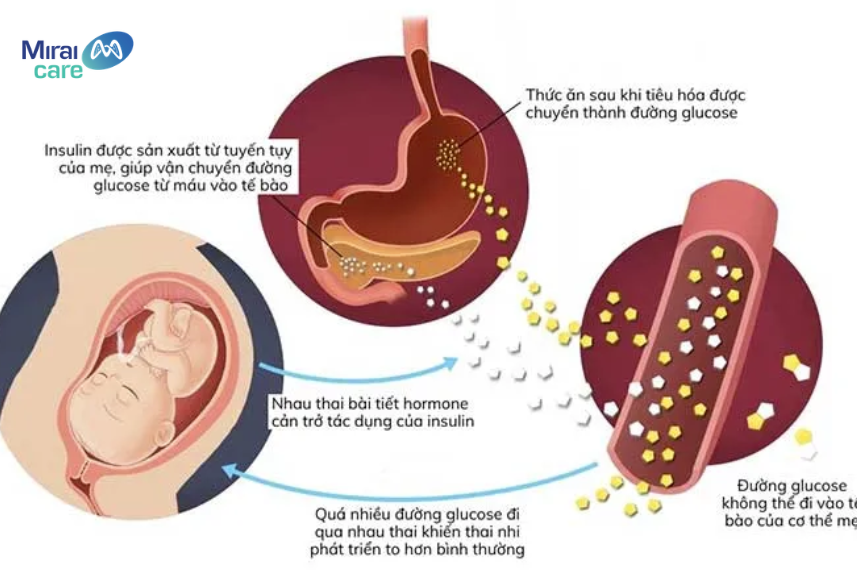 Tiểu đường thai kỳ là tình trạng đường huyết tăng cao trong thời gian mang thai, thường xuất hiện ở giai đoạn tuần 24–28. Nguyên nhân chủ yếu đến từ sự thay đổi hormone trong thai kỳ làm giảm hiệu quả của insulin – hormone có vai trò kiểm soát đường huyết.